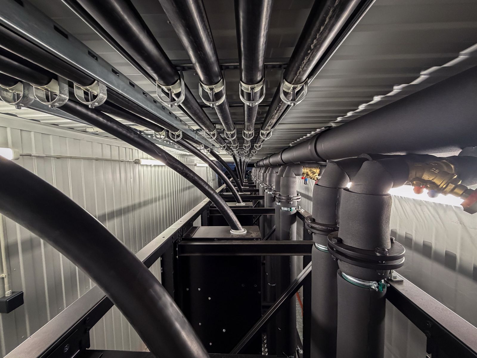 Each center accommodates 162 ASIC miners (such as Antminer S17, S19 and S21) and can deliver up to 600 kW of computational power. The excess heat from the extraction process is recovered and connected directly into the district heating network, so that the electrical energy is maximized.